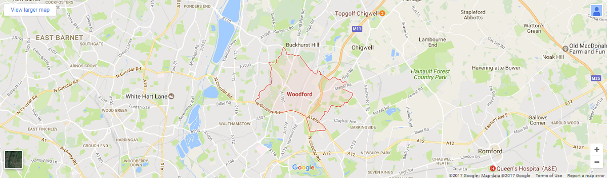 Woodford is a suburban town of North East London, England, occupying the north-western part of the London Borough of Redbridge. Woodford is served by London Underground's Central Line. It is located 9.5 miles (15.3 km) northeast of Charing Cross and is divided into the neighbourhoods of Woodford Green, Woodford Bridge and South Woodford. In the Middle Ages it was a string of agrarian villages surrounded by Epping Forest in the county of Essex. From about 1700 onwards, however, it became a place of residence for moneyed people who had business in London. As part of the suburban growth of London at the turn of the 20th century, Woodford significantly increased in population, becoming a municipal borough with neighbouring Wanstead in 1937 and has formed part of Greater London since 1965.