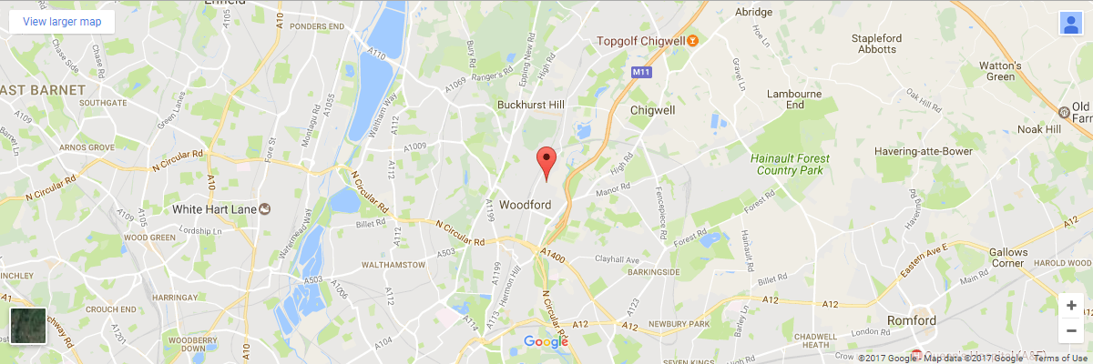 Woodford Green is part of the suburb of Woodford in North East London. Within the London Borough of Redbridge with a part on the western side of the green within the London Borough of Waltham Forest (this area is known as Woodford Side) and a couple of streets on the eastern side straddling into the Epping Forest District of Essex. Woodford Green was formerly in the administrative county of Essex, until it was absorbed into the newly created Greater London in 1965 now North East London.