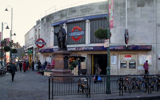 Tooting is a district of South London, England, forming part of the Wandsworth borough. It is located 5 miles (8 kilometres) south south-west of Charing Cross.