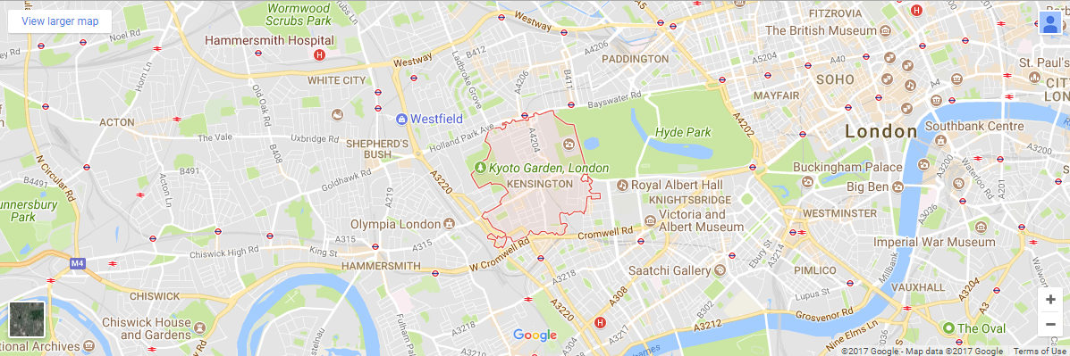 Kensington is an affluent district within the Royal Borough of Kensington and Chelsea in West London. The north east is taken up by Kensington Gardens, once private, as the name suggests, but today a public park with Italian and Dutch gardens, public buildings such as the Albert Memorial, the Serpentine Gallery and Speke's monument.